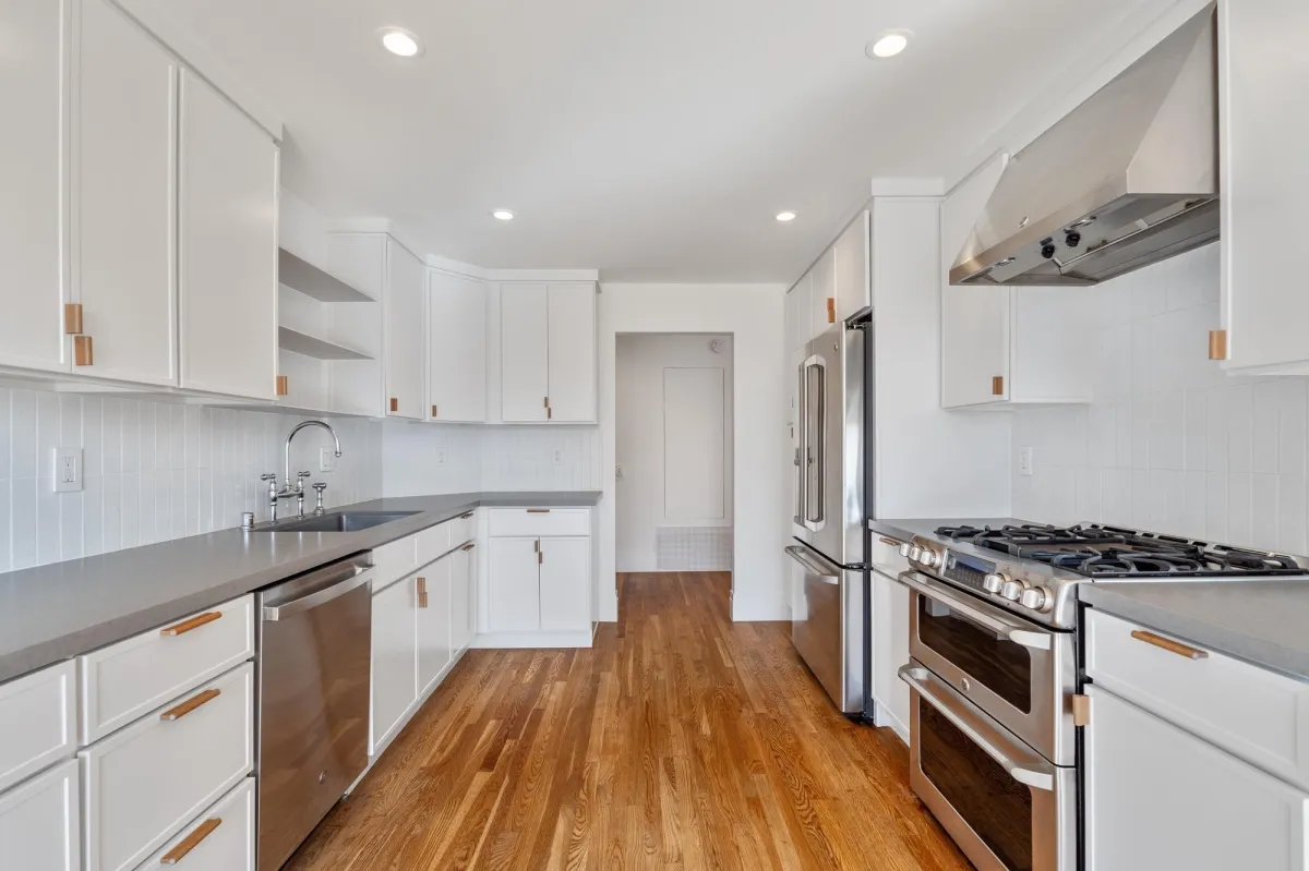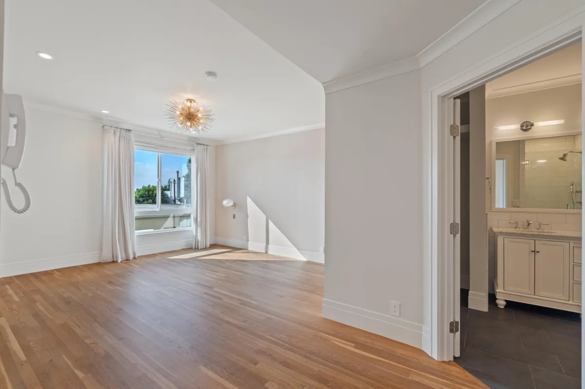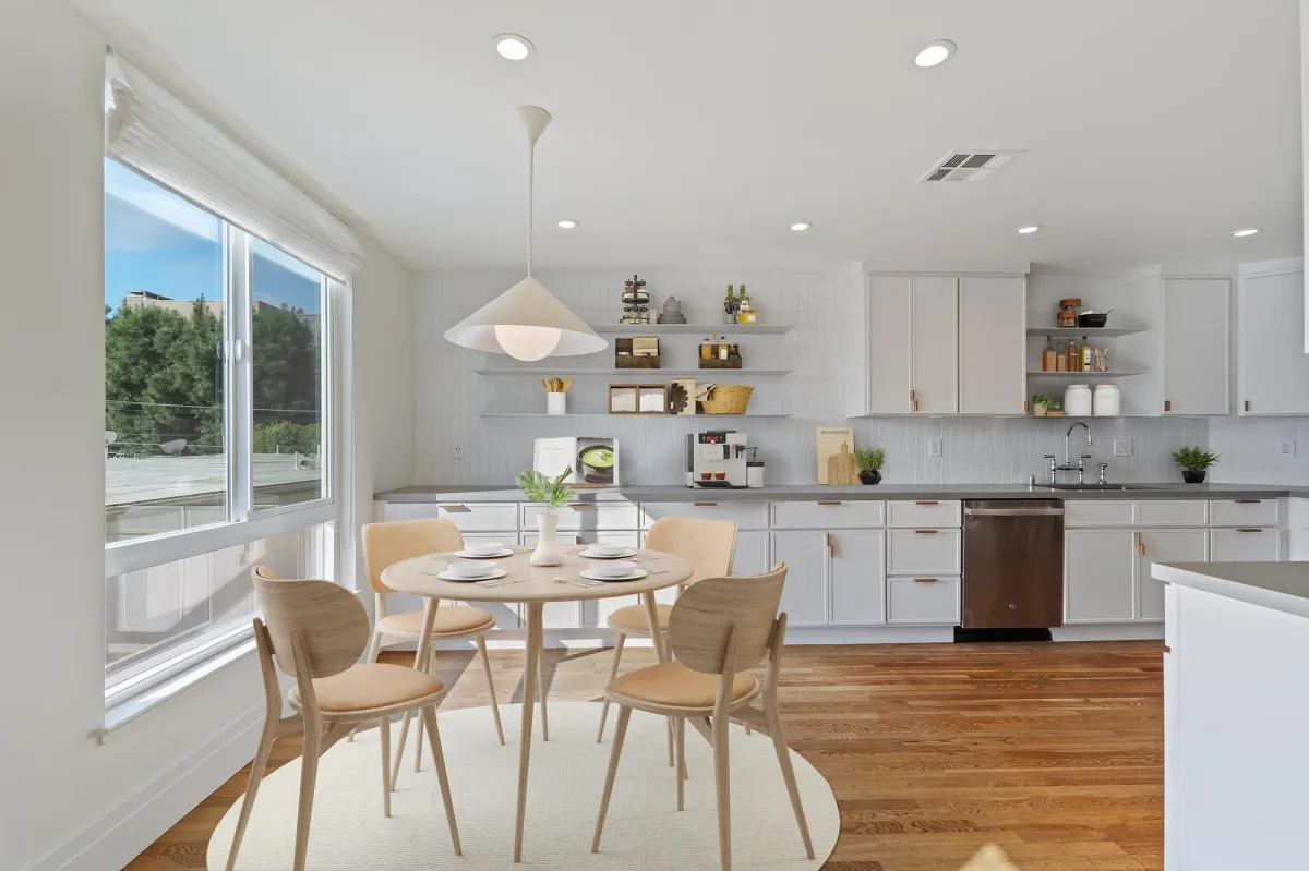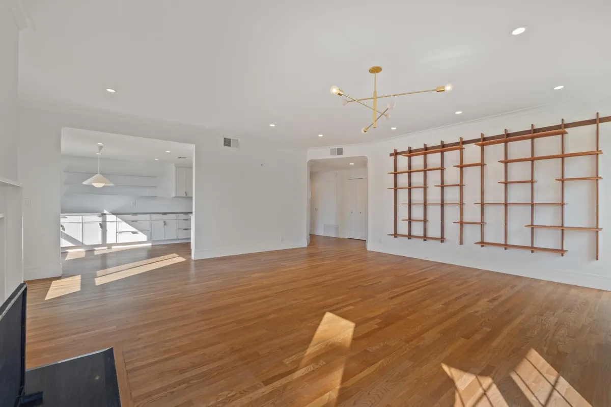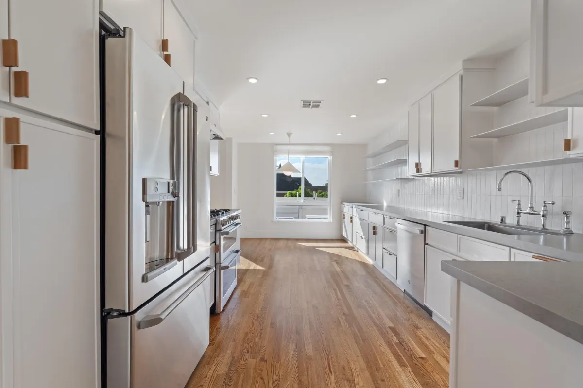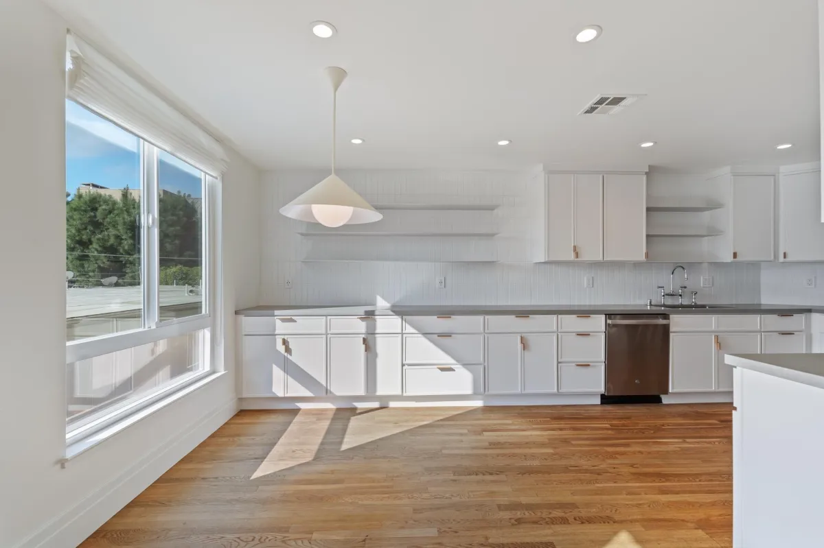 Designed for those who love to cook and entertain, the kitchen boasts a massive layout rarely seen in West LA condos. It features high-end finishes, an oversized footprint with ample counter space, and deep cabinetry for all your storage needs, seamlessly connecting to the formal dining and living areas.
